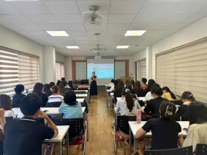 Tiếp tục triển khai các hoạt động trong chương trình ngoại khóa dành cho các bạn sinh viên Tiếng Nhật thương mại Chất lượng cao (TNTM CLC), ngày 14 tháng 10 vừa qua, Khoa Tiếng Nhật đã tổ chức Buổi nói chuyện với chủ đề Triển vọng thị trường lao động sử dụng tiếng Nhật. Diễn giả là Thạc sỹ Nguyễn Thị Mai Phương, cựu sinh viên TNTM K45, chuyên gia giáo dục tiếng Nhật, Nhà sáng lập Công ty cổ phần Giáo dục Nix.